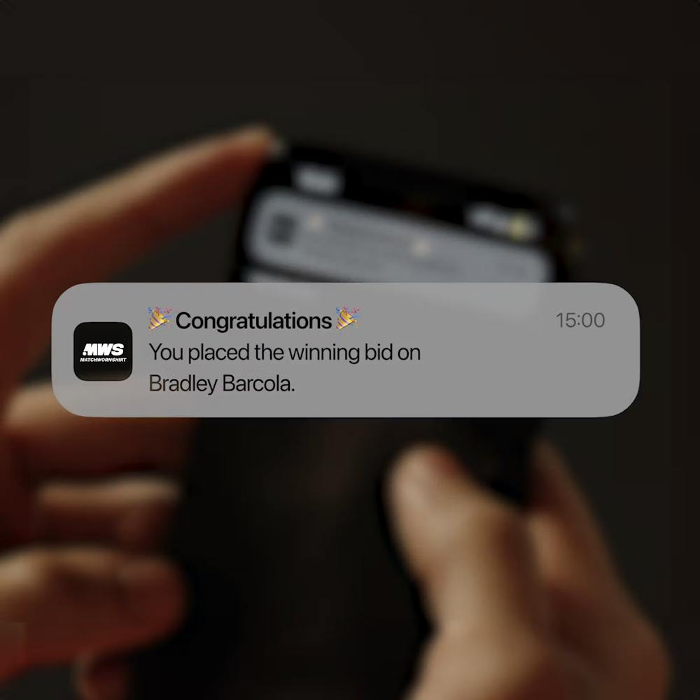 Auctions generally go live from kick-off. The kit managers collect the shirts from the players immediately after the game, oversee the signing, and ship them to one of our offices.