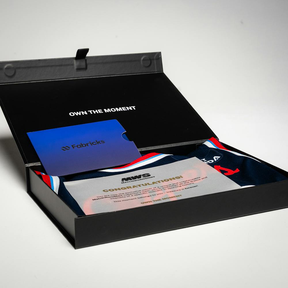 Using Fabricks’ groundbreaking technology, we create a digital certificate of authenticity for each jersey. The certificate verifies the jersey’s identity, providing access to a wealth of information about it, including details about the athlete and the event.