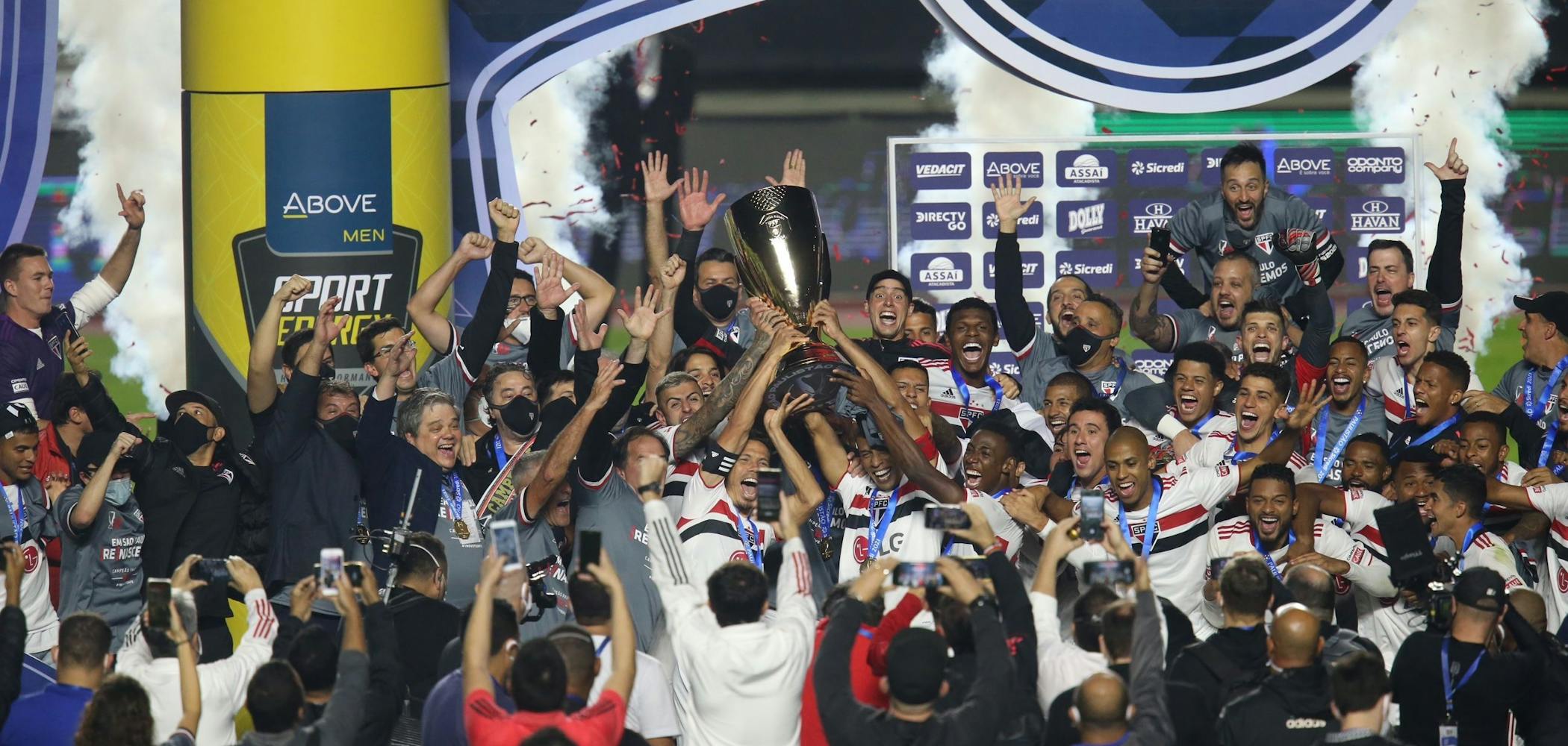 The team wore its beautiful home strip, whose simplicity is both iconic and beautiful. The shirts have a white base and bear the club’s ‘Tricolor’ stripes (red, white and black) across the chest, with the SPFC’s crest in the middle of it. Situated above the logo are five stars, two in gold and three in red. The gold denotes Adhemar Ferreira da Silva's world and Olympic records, a Brazilian triple jumper, who was born in São Paulo, and the red represents each of the Intercontinental and Club World Cups won by São Paulo.